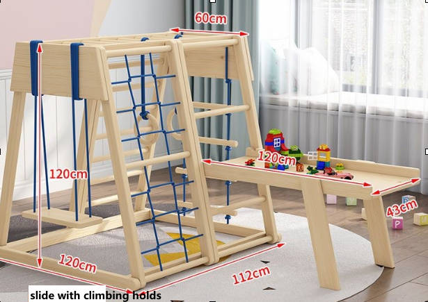 Crea un mini parco avventura proprio nella tua casa con la struttura di arrampicata in legno dei nostri bambini! 🛝 Perfetto per bambini e bambini piccoli, questo set di giochi include una diapositiva, uno swing e una parete di arrampicata, offrendo ore di divertimento attivo.