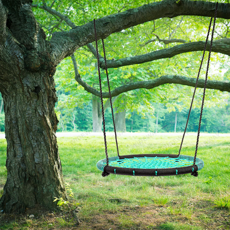 L'altalena rotonda in rete volante è progettata per offrire un'esperienza all'aperto unica ed emozionante. L'altalena è costruita con un robusto telaio in acciaio avvolto in una corda resistente e durevole simile a una rete. I sedili sono comodissimi e il design a forma di rete aggiunge un'ulteriore dimensione di divertimento all'esperienza dello swing. L'altalena ha un'impressionante capacità di peso di almeno 400 libbre, garantendo che possa essere utilizzata in sicurezza sia da bambini che da adulti.